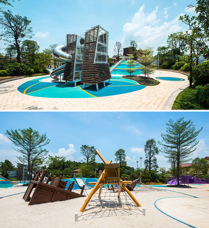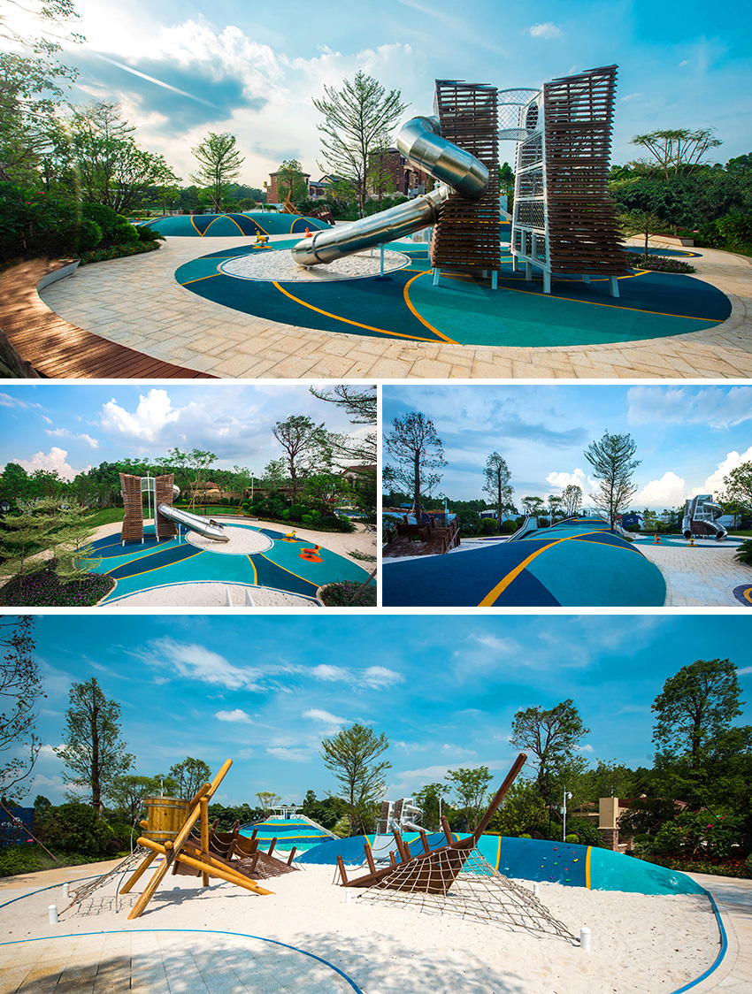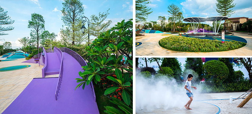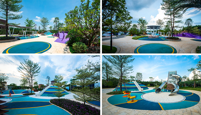 佛山云東海地區(qū)自古以來就水面彌漫百里,稱之“古云東海”。云東海高爾夫花園洛嘉兒童主題樂園以水作為核心元素進(jìn)行發(fā)想,以創(chuàng)造五彩泡泡家園夢(mèng)幻旅程為設(shè)計(jì)核心理念。設(shè)計(jì)師在這里用五彩泡泡的概念實(shí)現(xiàn)了大小朋友們的夢(mèng)想,利用非動(dòng)力兒童游樂設(shè)施的概念打造兒童游樂場(chǎng),為孩子們提供可持續(xù)快樂!