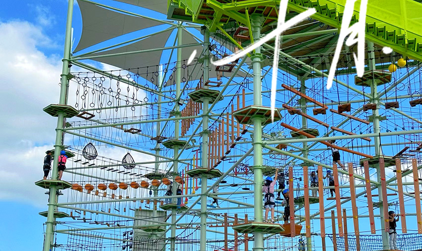 第二、三、四層則設(shè)計(jì)為成人步道層,適合大多數(shù)群體的游玩需求。設(shè)計(jì)有空中自行車、空中劃艇、高低梅花樁、搖擺吊環(huán)步道、圓筒步道等30多項(xiàng)步道項(xiàng)目。