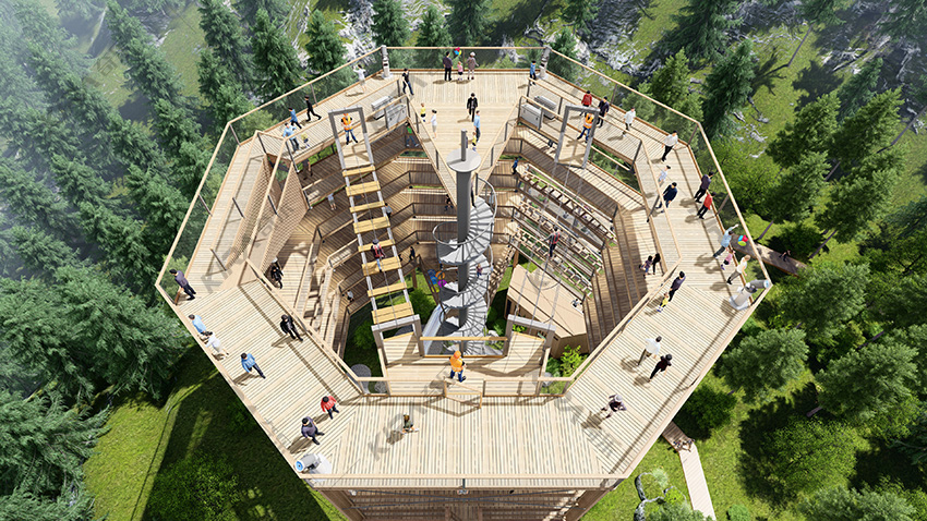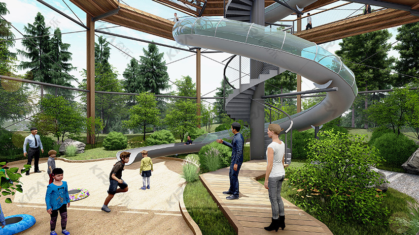 旋轉滑梯、螺旋步道、高空觀景臺