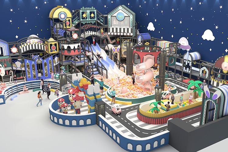 項目主色調以鐵綠色為主,場地空間布局層次分明、造型新穎規劃合理。以茉莉配色為設計理念,支持馬卡龍系列定制。內部游樂項目配置豐富齊全,包括滑滑梯、球池、椰子樹、彈跳迷宮、沙池、小蹦床等項目,造型設計活潑可愛充滿卡通風格,外觀色彩五彩繽紛能夠令孩子產生親切感,項目娛樂性互動性較強,清新而又舒適的游玩環境,能夠使孩子在玩樂中喚醒對美的渴望。